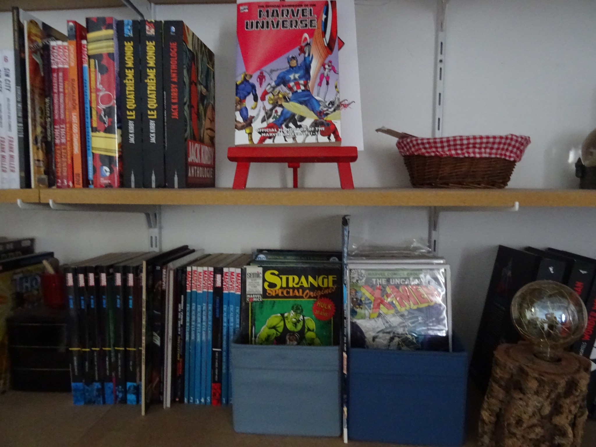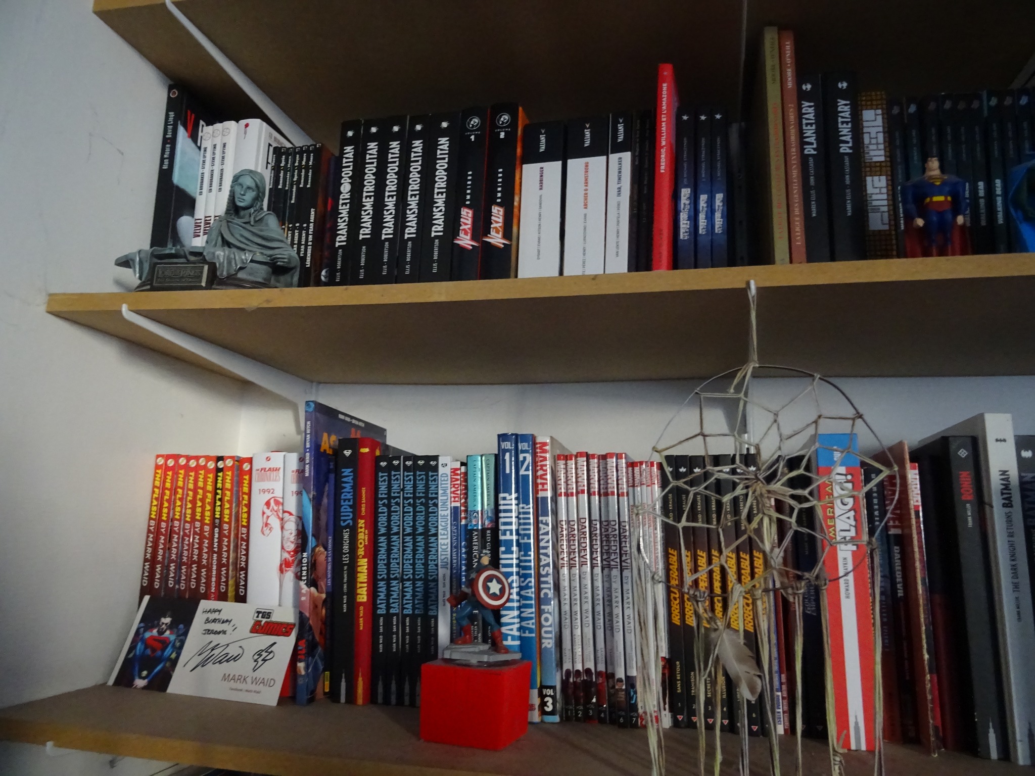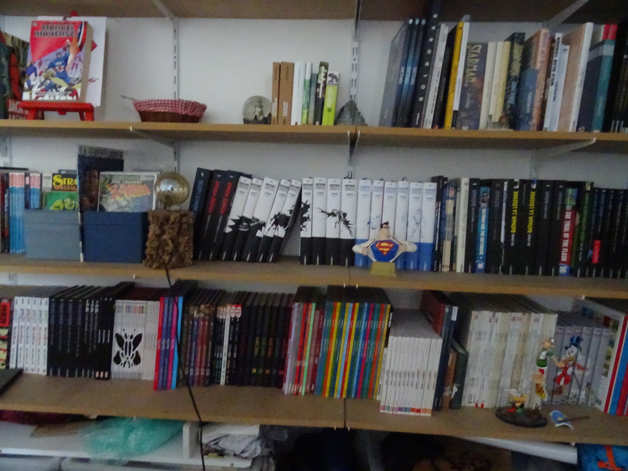 Les mangas ensemble, les séries complètes (ou presque) aussi, on stocke les livres ciné/bd/série/musique/jeu/peinture ailleurs et on fait des coins pour Garth Ennis, Walter Simonson, Mark Waid, Frank Miller et Eric Powell et