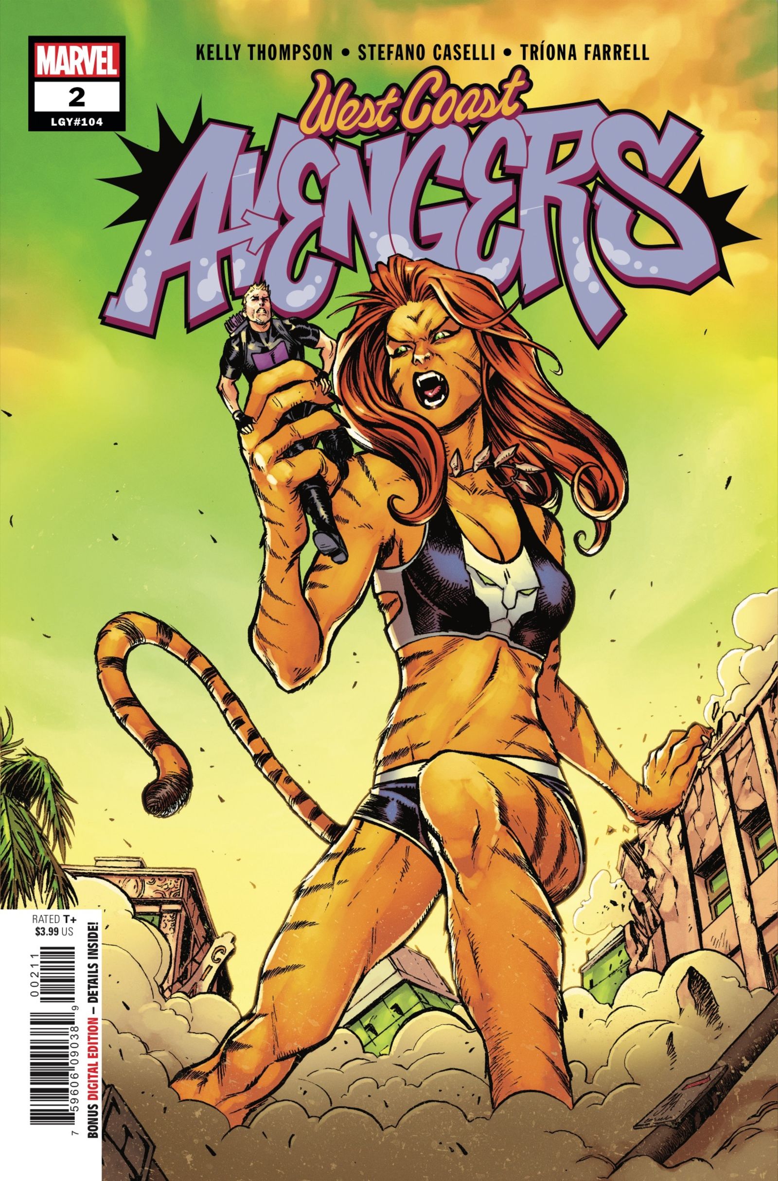 Description: If the team thought a 50-Foot Woman version of Tigra was trouble, just wait till they get a load of her « friends. » That’s right, it’s close encounters of the very large and destructive kind as the West Coast Avengers try to save the day from B-movie-monster-sized threats roaming Los Angeles! And while her team takes the direct approach, Kate Bishop finds herself in a compromising position when trying to get ahead of the game… Is she going to end up on the wrong side of this battle?!