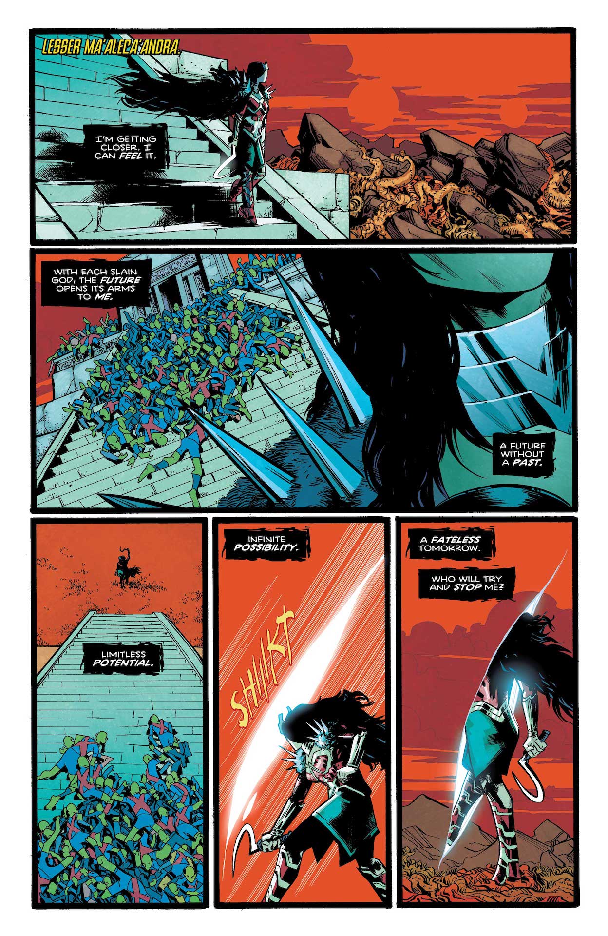 Many enter these hallowed grounds of the DCU, but none return to the world of the living. So how is Diana supposed to save herself, let alone a whole pantheon of gods? With her weapons rendered useless, she’ll have to find the key to victory within!