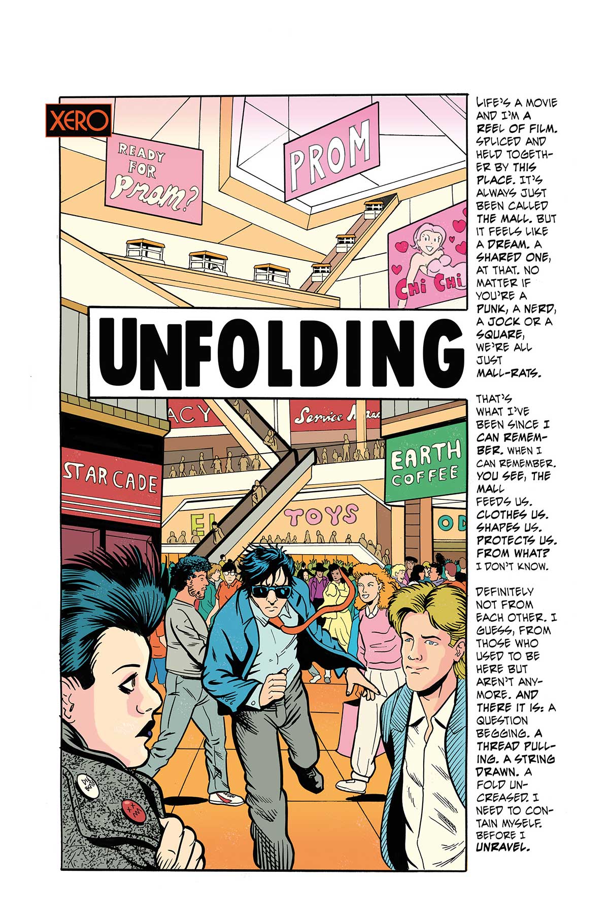 Xero discovers that his life in the Endless Mall is really just a waiting game in a sacrificial bubble. His plunge down the rabbit-hole will lead him further away from his droll, comfortable life and challenge him to fight against this mega-structure and the malevolent forces behind it.